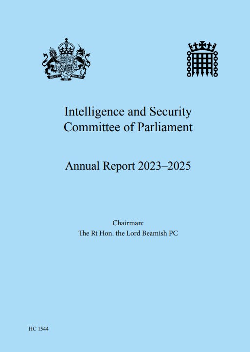 The ISC Annual Report 2023–2025 signals that the UK intelligence oversight is under strain from remit gaps, reducing shortfalls, and government obstruction, even as state threats particularly from china and expanded powers under new legislation increase the risk of unchecked activity.
